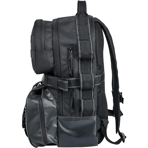 • Main interior compartment has a padded laptop sleeve with elastic retainers
