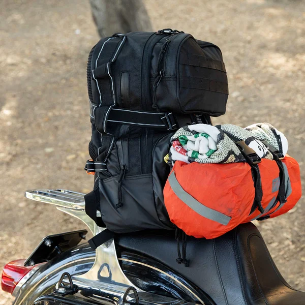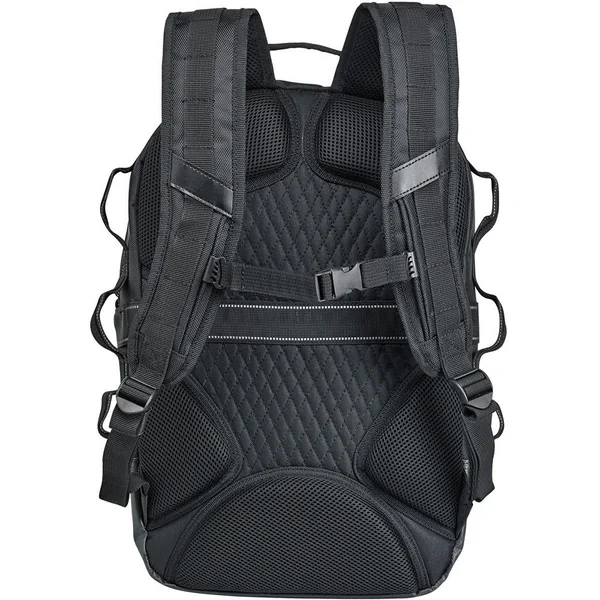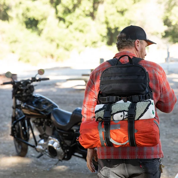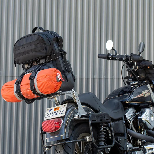 The Biltwell Exfil-48 Backpack comes in black and gets the job done as an incredibly versatile bag for riders. It was designed by riders, for riders, and it’s packed with motocentric features including 2 large external pockets with dedicated, tool, hardware and additional gear storage. Two large internal pockets for securely stashing items like a fuel or water bottle. With 2 exterior zippers, these items can be accessed independently while the main compartment is fully zipped. In the back of the main interior compartment is a padded lap top sleeve with elastic retainers. The center compression strap cinches cargo down and these straps can be reversed and clipped to each other around the back of the bag and to help secure it to a sissy bar. Additional external straps help secure the bag to your moto and can be used to add a bedroll or jacket to the rear of the bag. A ventilated mesh back panel with molded bio-foam keeps some distance between your back and the pack which allows for air-flow. The bottom portion of the bag is PVC coated for water-resistance and easier clean up. Once again Biltwell holds true to their 120z beer can unit of measure and this sucker packs a whooping 48 cans without breaking a sweat.