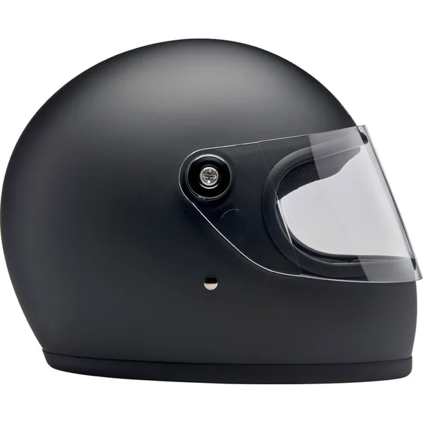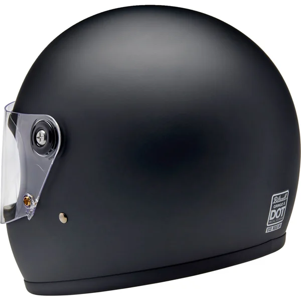 The Biltwell Gringo S is built around Biltwell’s injection-molded ABS outer shell and features a shock-absorbing EPS liner with hand-stitched interior padding, cheek pads and BioFoam chin bar cushion for comfort. The anti-fog Gringo S shield boasts awesome optics and simple hinge mechanics for high style and easy removal for replacement or cleaning. A snap and tab configuration on the rider’s left side offers speedy opening and secure closing to protect its wearer from road debris and wind irritation with little fanfare or complication. Grab it in a Matte Black finish.