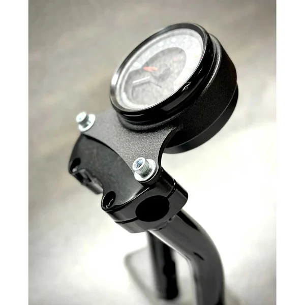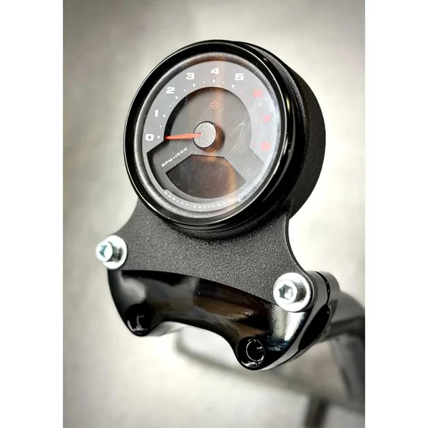 For those running Bung King pullback riser with the stock upper clamp on the 2022 to current Low Rider S and other models, this can put the gauge at an angle that is hard to read. Bung King’s new speedo mount will reduce the angle of the gauge face so that on their 2″ pullback risers with this gauge mount the gauge face will be back to the stock angle. This can also be used on many other HD gauges as long as you use the 2022 and up Low Rider S back cover. The gauge does require the use of a standard black upper top clamp the same used on most earlier dyna and sportster models, or are available as an addition to this kit. The bracket is made from Mild Steel and powdercoated with either a Gloss black or Wrinkle black finish, and comes with the longer bolts needed to install.