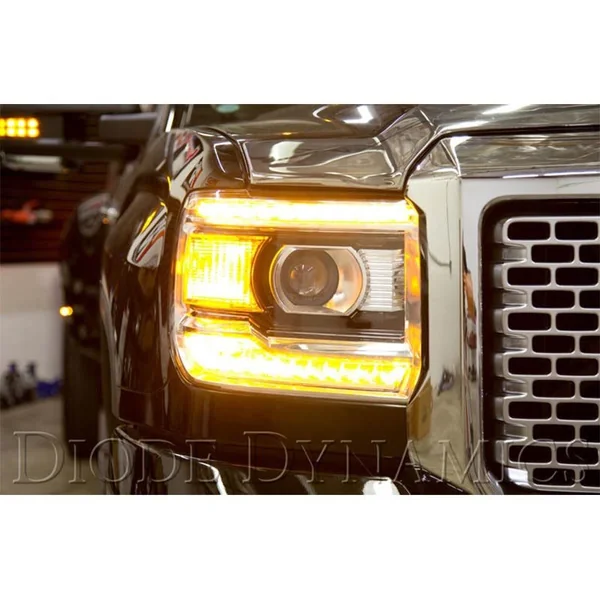 Time for an upgrade! From the factory, the GMC Sierra has LED accents in the headlight that illuminate in a white color, for the parking light and DRL. Diode Dynamics replacement LED boards add a brighter DRL and additional amber turn signal for a custom, yet functional look. Your order includes two sets of LED boards, one for each side of the vehicle.