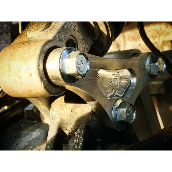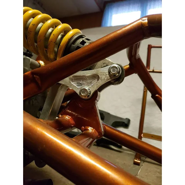 This “F4i Saggy Ass” suspension link raises the tail and reduces the linkage ratio action on the Honda CBR600F4i rear shock.