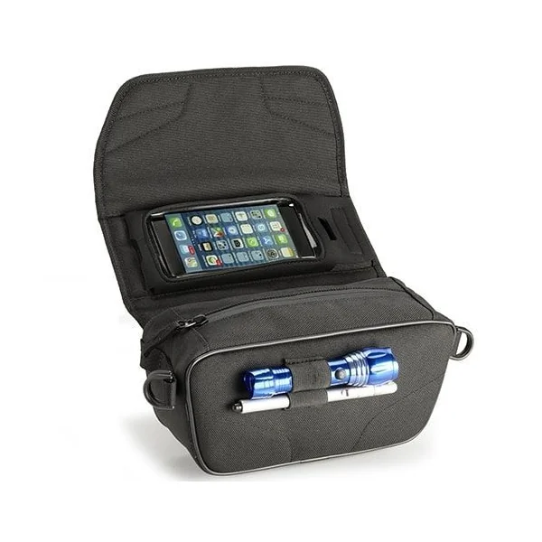 Keep your mobile phone and other essential items securely within reach always with the GIVI T516 handlebar pouch waist pack. Tough 1200D W/R polyester construction designed for fastening to the handlebars using the built-in straps. Keep your phone and other items neatly organized while traveling on the road. When it’s time to get off the motorcycle simply secure the T516 conveniently on your waist with the adjustable quick-release belt and set off on foot. Maximize your versatility when traveling with the GIVI T516 handlebar pouch!
