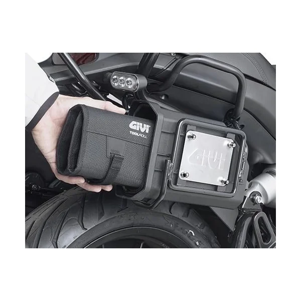 The GIVI T515 tool bag is an excellent way to keep all your hand tools organized and secured. Durable polyester construction is bolstered with Hypalon inserts and compatible with the military inspired M.O.L.L.E (Modular Lightweight Load-carrying Equipment) system. Tools are not included with the purchase of this bag but all the available compartments and straps accept and secure a variety of different tools. Recommended for use with the GIVI S250 tool box. Enjoy an organized set of tools while you’re out on the road and pack them in the T515 Roll Top tool bag from GIVI!
