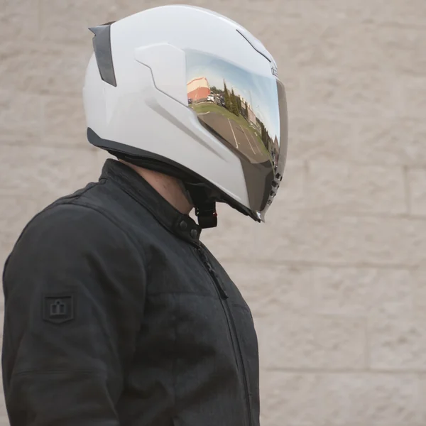 Grab an RST Silver Fliteshield for your Icon Airflite helmet, a fresh design that mixes up the typical motorcycle shield look.. Featuring a 3D molded process for optical clarity, and a fog-free coating.