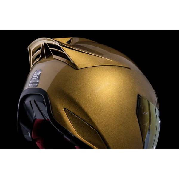 The new Icon Domain Cornelius Helmet comes in a bold gold finish that offers plenty of flash along with plenty of protection and modern features you’ve come to expect from an Icon motorcycle helmet. Style and substance with a smooth, shiny gold finish and unique rear spoiler.