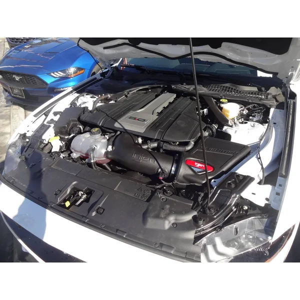 The EVO9202 Evolution cold air intake system by Injen Technology is the next generation of performance intake systems for the 2018-2023 Ford Mustang GT with the 5.0L engine. Every EVO9202 cold air intake is made in the USA from cross linked high density polyethylene for extreme durability. The box has a forward facing ram air scoop to provide fresh, clean air to your engine. This intake system also includes stainless steel hardware and automotive grade urethane couplers. No cutting or drilling is required for an easy installation process that does not require aftermarket tuning for exceptional HORSEPOWER and TORQUE GAINS.