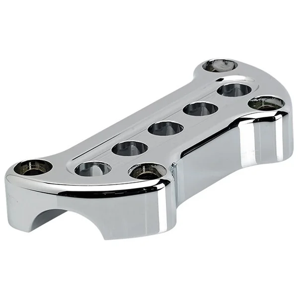 A clean, simple handlebar top clamp for your Harley. Chrome finish.