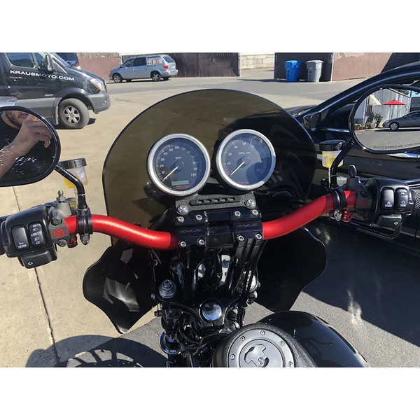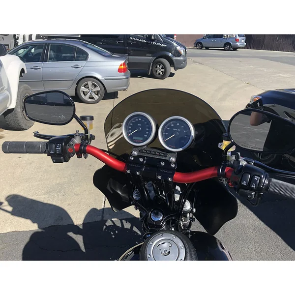 The Kraus Stocker Gauge Adapter allows you to mount an OEM Harley gauge bezel straight to the Isolated Risers Top Plate. This will work for OEM Dyna, Sportster, and FXR riser mounted gauge mounts.