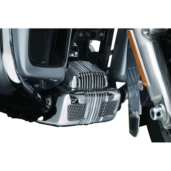 Replace the bland factory Coolant Pump Cover with a sleek chrome cover. Direct replacement for the factory cover and hides the unsightly voltage regulator for the finishing touch. Additional Information