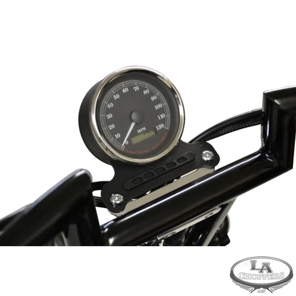 If you’ve added T-Bars to your Harley Sportster or Dyna and now you’re stick with figuring out where to mount your speedometer, LA Choppers has the answer.