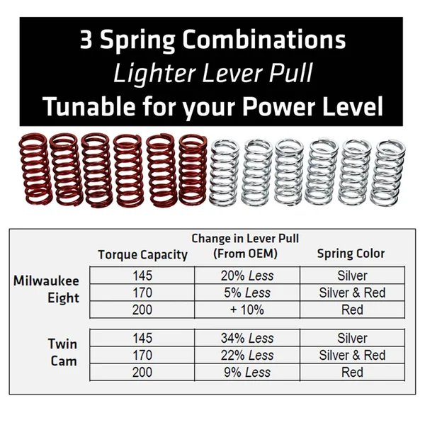 • Interchangeable springs to tune lever effort and performance