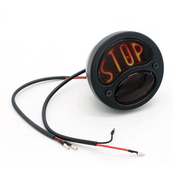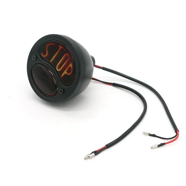 Universal Round Tail Light “Stop” ideal for custom motorcycles, bobbers, cafe races and other custom porojects.