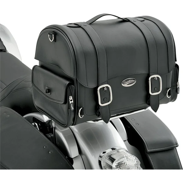 - Easy-to-use sissy bar strap included, adjustable bungee straps sold separately; multiple anchor points, including four heavy-duty chromed D-rings and several strap slots provided for fast, easy mounting