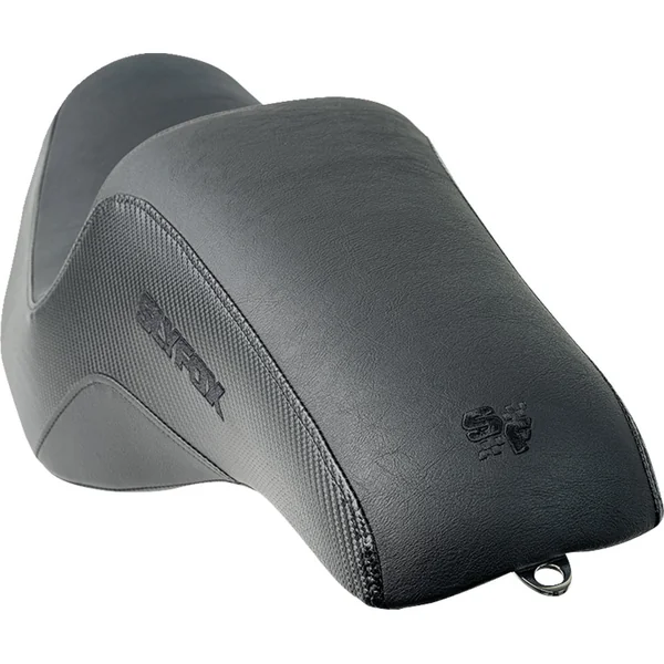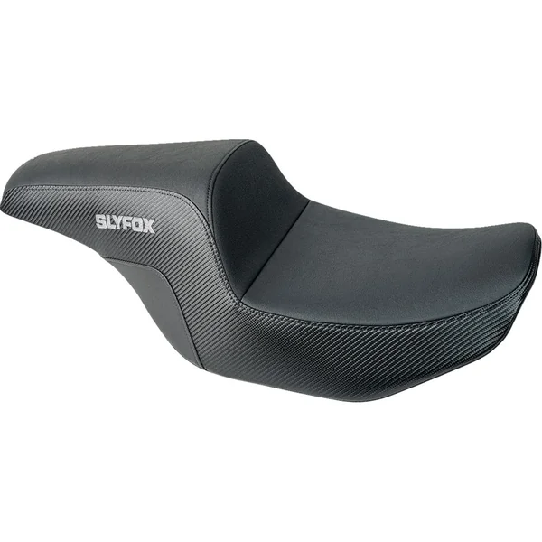 The Drifter seat from Slyfox has the curves for riders that need a little more comfort without compromise. Designed to fit 2024-2026 Harley Touring models. The Drifter features automotive grade vinyl seating area, slipstop on lumbar, and carbon fiber on the sides. It also has a contoured seating area for maximum comfor with a narrow front for better leg clearance. Choose between the Black or Grey stitch detail. Fully carpeted bottom with bumper protectors. Made in the USA