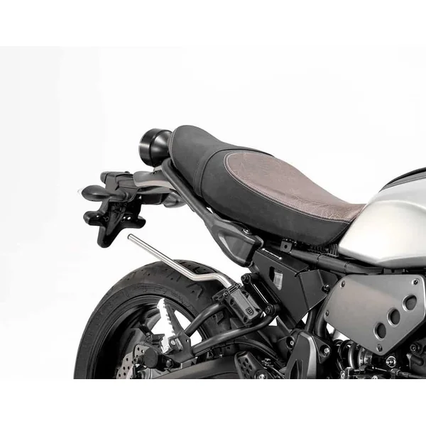 The SW-MOTECH Blaze H sport saddlebag system for the Yamaha XSR 700 adds cargo capacity with a stylish aerodynamic design that can be quickly removed for a nearly stock appearance. The H designation means the bags sit high and tight for maximum clearance. Semi-rigid 1680 ballistic nylon offers excellent durability and support with 14 liters of capacity that can be unzipped and expand to 21 liters per side for a total storage volume of 42 liters. This clever saddlebag system utilizes the passenger peg mounts to fix quick releasing stainless steel rods which stabilize the saddlebags at speed so they don’t contact the rear tire or wave around in the wind. The bags themselves connect with a large Velcro upper strap that goes over the passenger seat for easy fastening and proper support. Once you reach your destination 98% of the luggage system can be quickly removed by unfastening the top strap and removing the quick-release support rods.