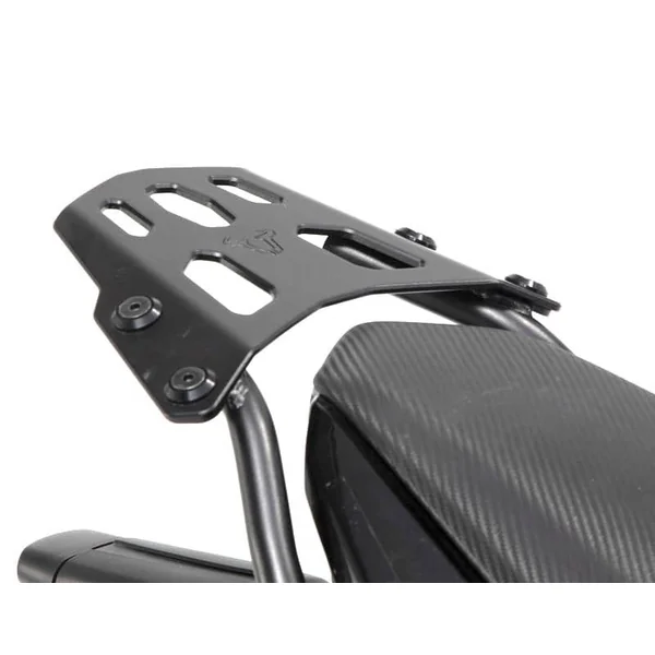 Add versatile storage capacity in the form of soft luggage or hard top cases on your KTM Super Duke with a SW-MOTECH STREET-RACK. Robust aluminum is CNC machined in a compact overall size to complement the sportiness of the motorcycle while without luggage. Luggage adapter plates for specific branded top cases are available for mounting and removal using the proven QUICK-LOCK design to make loading and unpacking a breeze. Improve the traveling capabilities and ride farther with a STREET-RACK luggage top rack by SW-MOTECH!