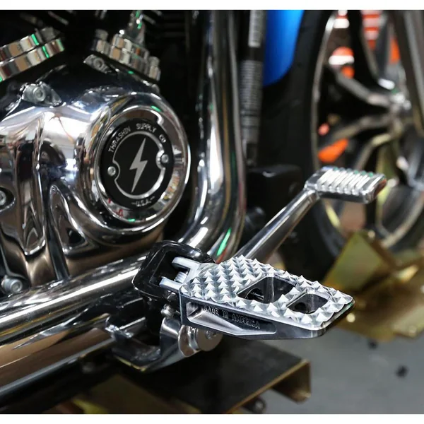 The P-54 pegs are a sleek take on the standard looking peg. They feature a 2.25″ Wide Tapered Platform peg for a comfortable grip. Chrome finish. Made in the USA